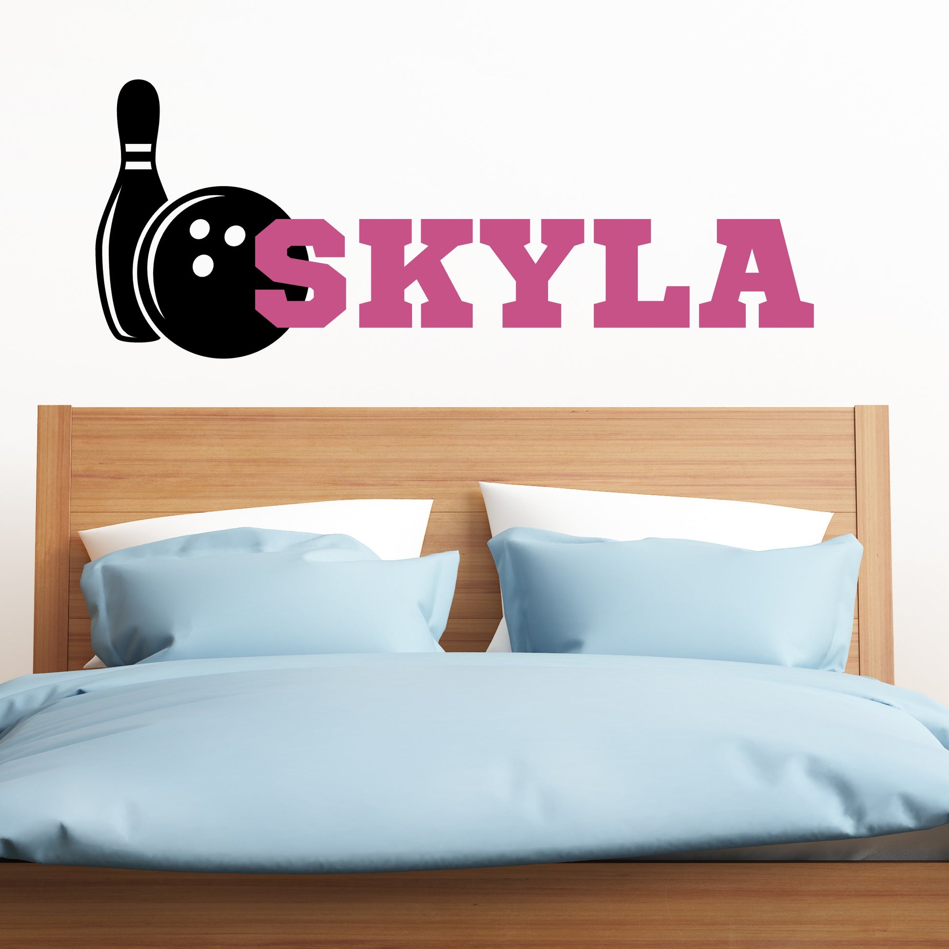 Strike up some excitement in the world of bowling with this awesome decal! Featuring a bowling ball and pin design, it's a must-have for any dedicated bowling enthusiast. What sets this decal apart is the chance to make it uniquely yours by adding your child's name. Choose from a range of sizes and colors to ensure it's a striking addition to your child's bedroom or playroom, adding a perfect touch to their personal bowling lane of style.