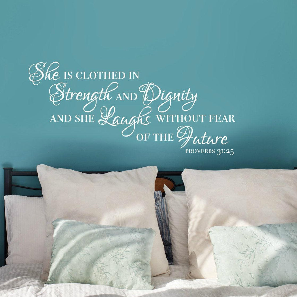 Christian Wall Decals - She is Clothed in Strength and Dignity - Proverbs 31:25