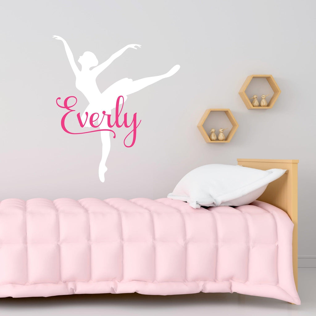 Read moreThis vinyl decal showcases the silhouette of a ballerina as she twirls around her “stage”. Your little one’s name sits just atop the silhouette. Both can be customized with your choice of color, from over 30 colors available. Tiny dancer and not-so-tiny dancers will adore the elegant touch this personalized name sign brings to their room decor.