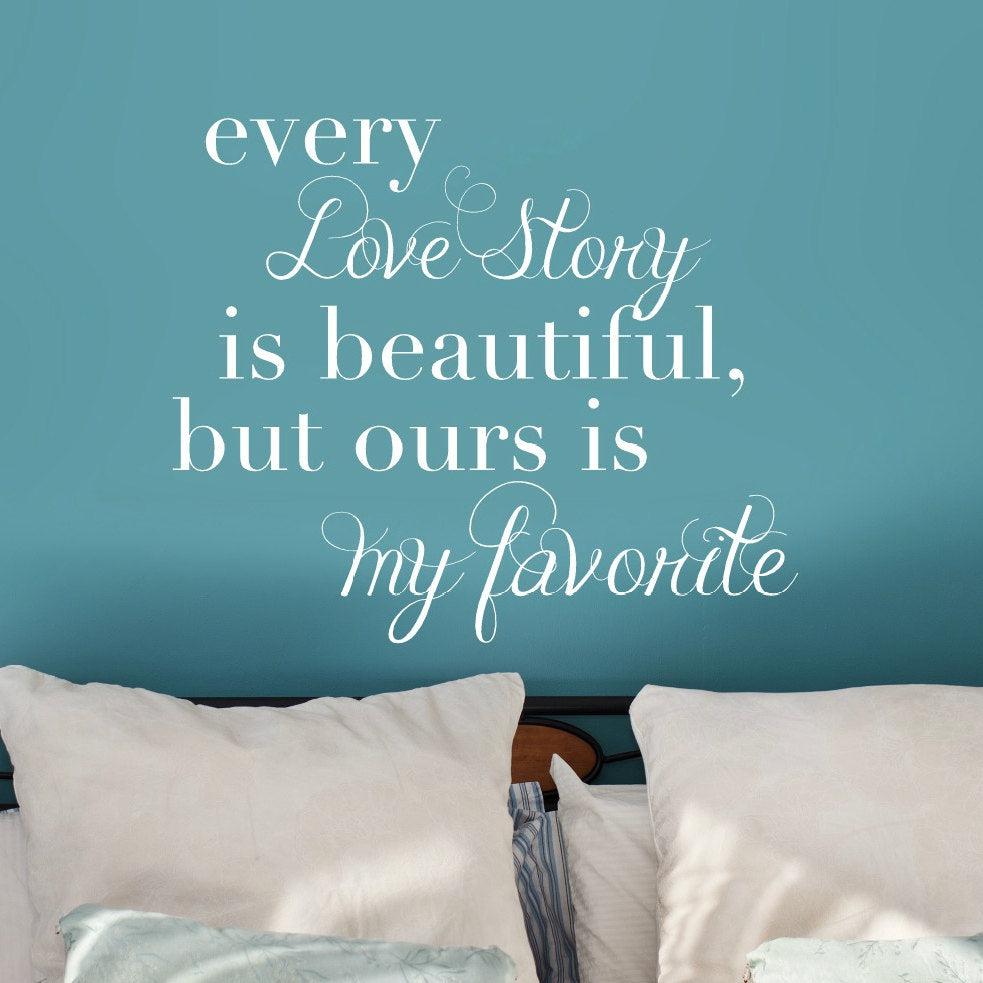 Read moreA beautiful addition to your bedroom decor, this romantic quote reads “Every love story is beautiful but ours is my favorite.” Choose from over 30 colors to find just the right complement for your current color scheme. Whether you’ve been married 1 year of 50 years, you’ll adore waking up to this whimsical wall sticker.