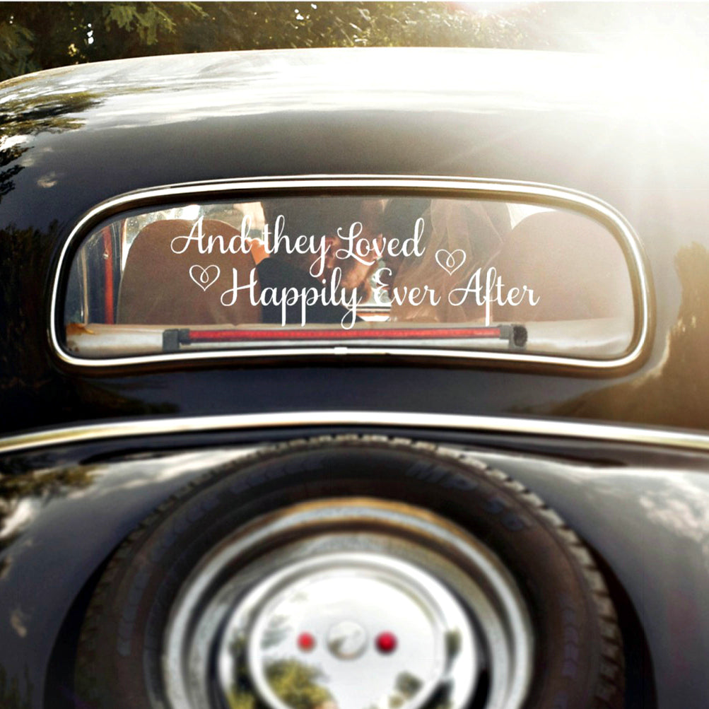Add a posh touch to your wedding day “chariot” with this fanciful wedding car decal. Give the newly-wedded couple the happiest of send –offs with this bridal car decal adorning their car. Designed in artistic detail, it features the text in a scrolling font. Available in the size and colors of your choosing, it will add a special distinction to finish off a blissful day. It is an original Vinyl Written creation. Order now to guarantee availability.