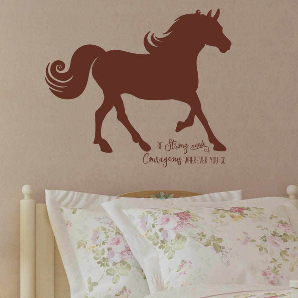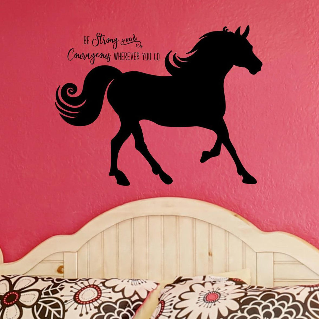 Read moreA strong horse graces this vinyl wall mural along with the inspirational quote “Be Strong and Courageous Wherever You Go”. Create the perfect motivational gift for your horse lover! You can customize this piece of horse decor with your choice of over 30 colors. Give someone in your life the strength and courage they need to make it through hard days with this inspirational vinyl wall quote decal.
