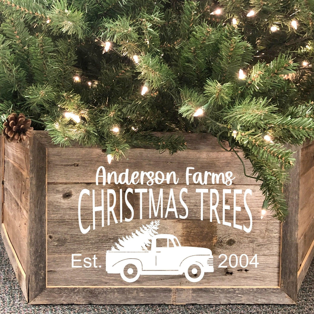 Personalized Christmas Tree Box Decoration - Farmhouse Truck Decal