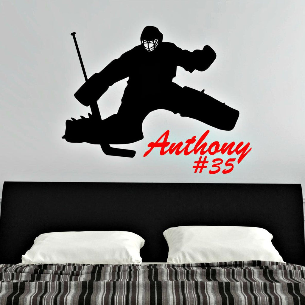 Personalized Hockey Goalie Vinyl Wall Decal with Name and Number