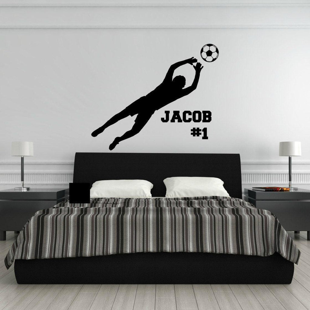 Read moreThis action-packed vinyl decal features a goalie diving to save a ball with his name and jersey number just below. Both features can be customized in your choice of over 30 colors. Add the excitement of a soccer game to your room decor with this personalized soccer vinyl wall decal!