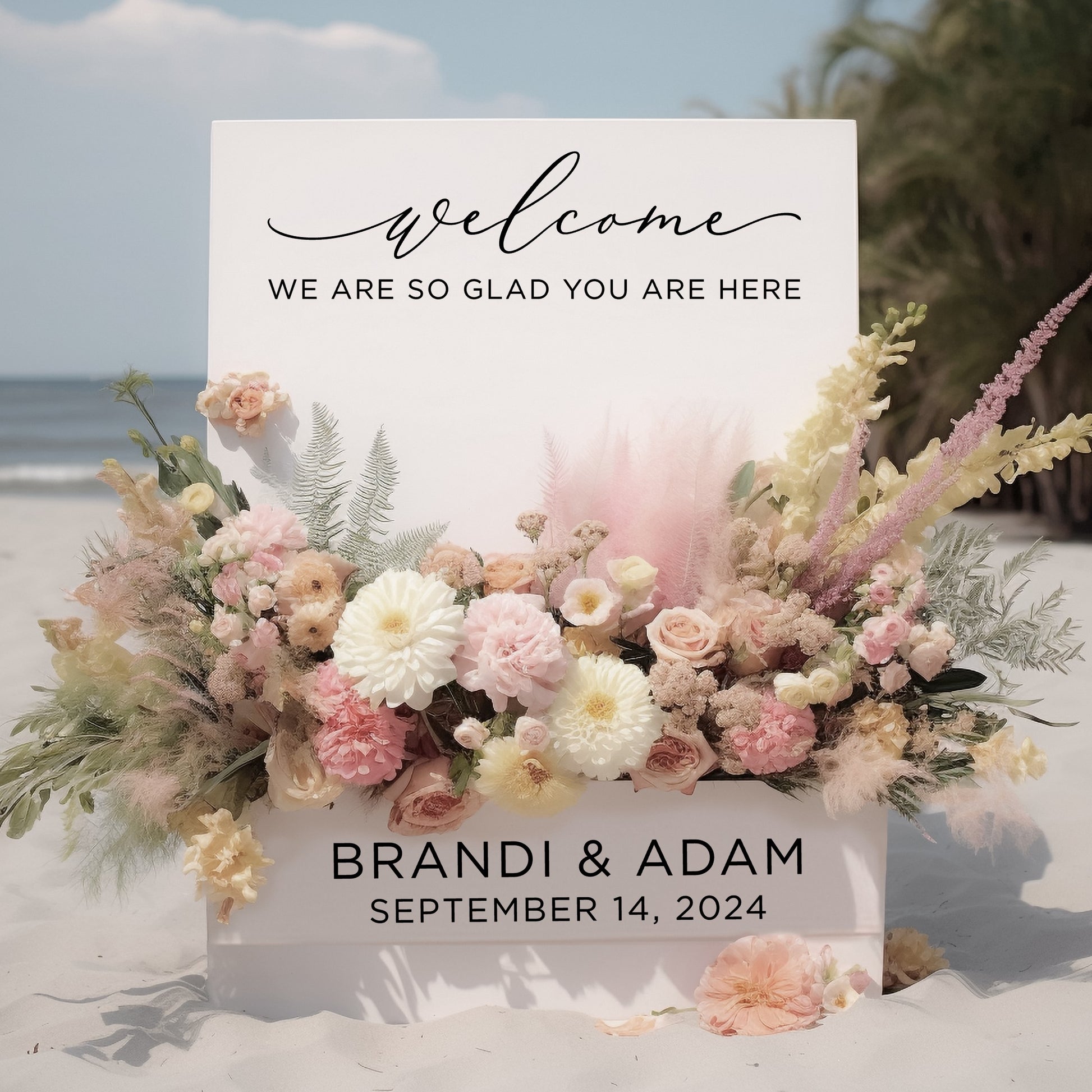 Celebrate your love story with this elegant custom wedding decal. Not only is it a beautiful adornment, but it's also a testament to the thought and care you've put into making your special day memorable. As you gather your loved ones to join in your happiness, this decal is a warm and welcoming statement of your joy. It's a memento of a magical day that you and your guests will cherish long after the confetti settles. So go ahead, make this essential part of your celebration. After all, a personal touch is what transforms a great occasion into an unforgettable one.
