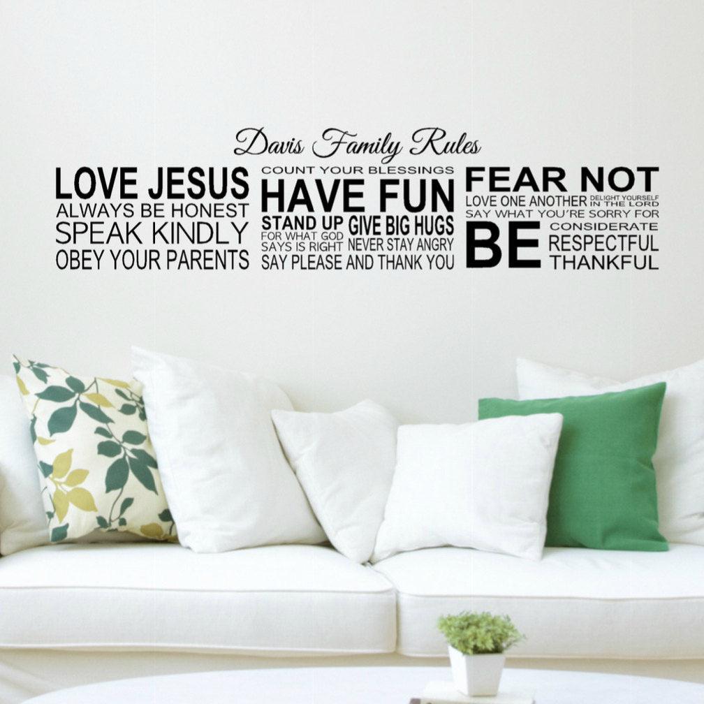 Every home has a set of rules. For Christian families, loving Jesus is at the top of that list. Offer words of wisdom and encouragement to your family with this inspirational vinyl wall decal.