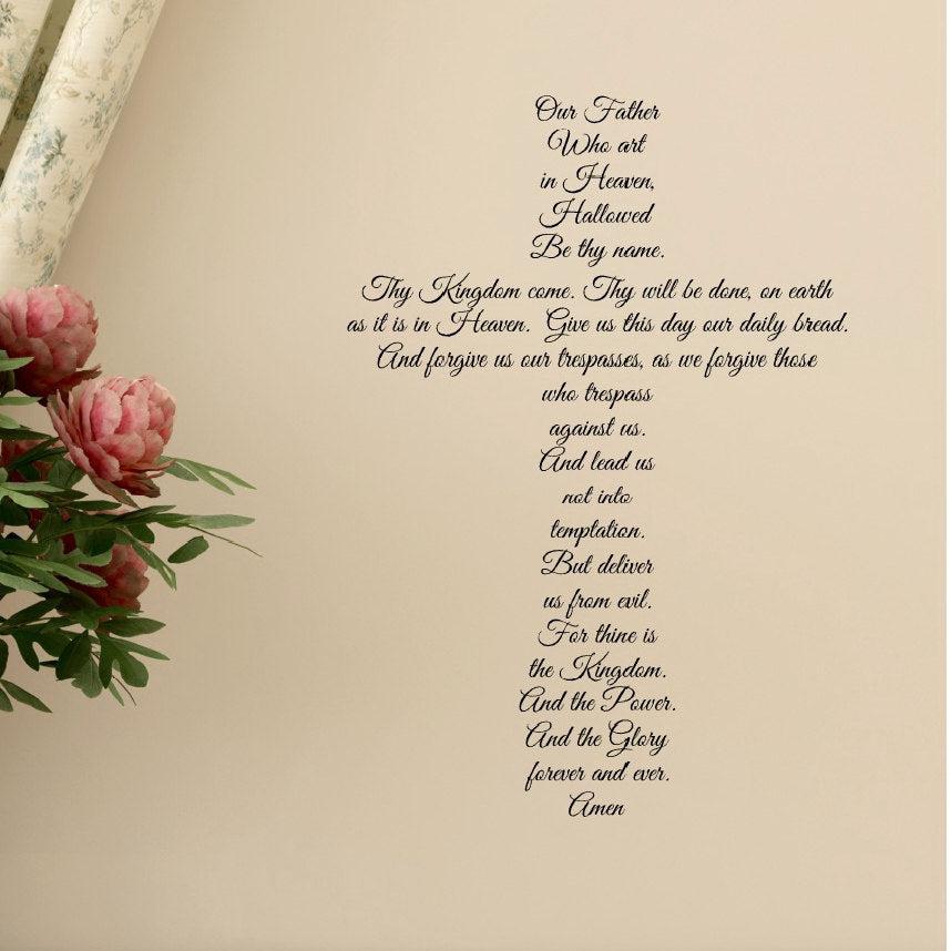 Read moreThis breathtaking wall art decal showcases the Lord’s Prayer in beautiful cursive font in the shape of a cross. Create the perfect custom housewarming gift for a loved one by choosing from over 30 colors to match the new home’s decor. Walk closer with Christ everyday with this precious inspirational vinyl wall sticker.