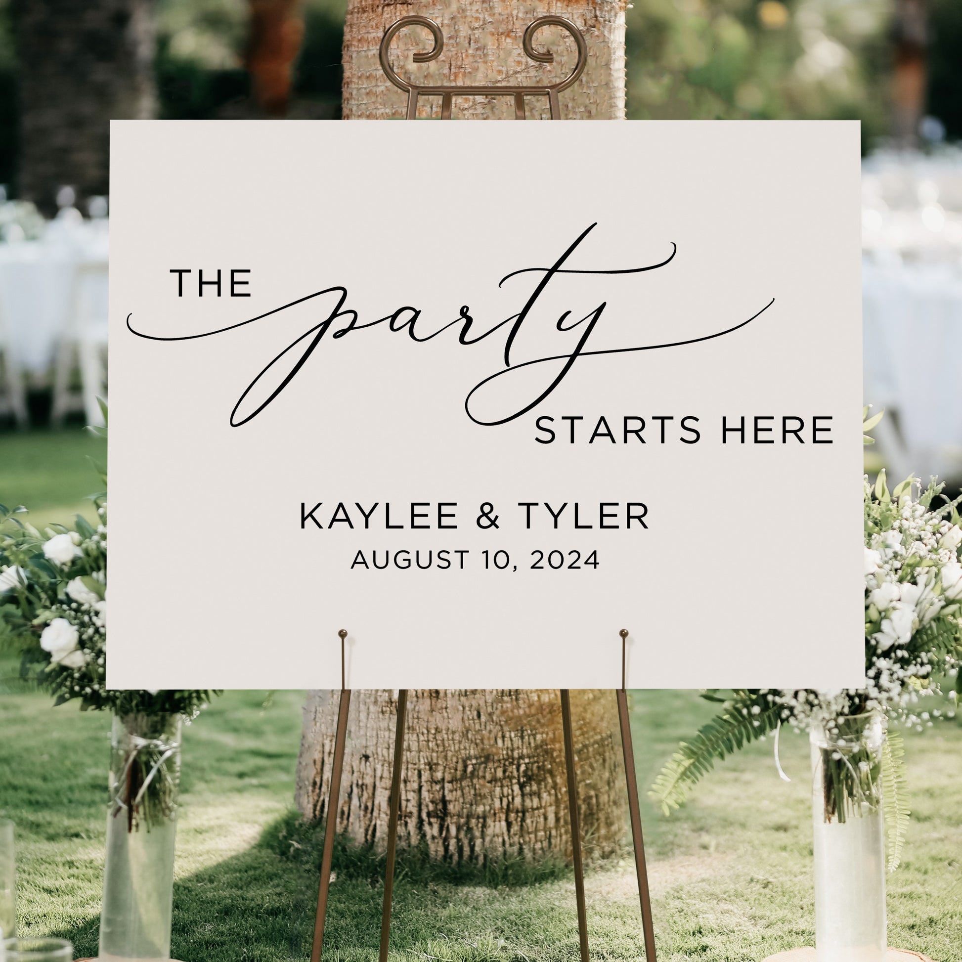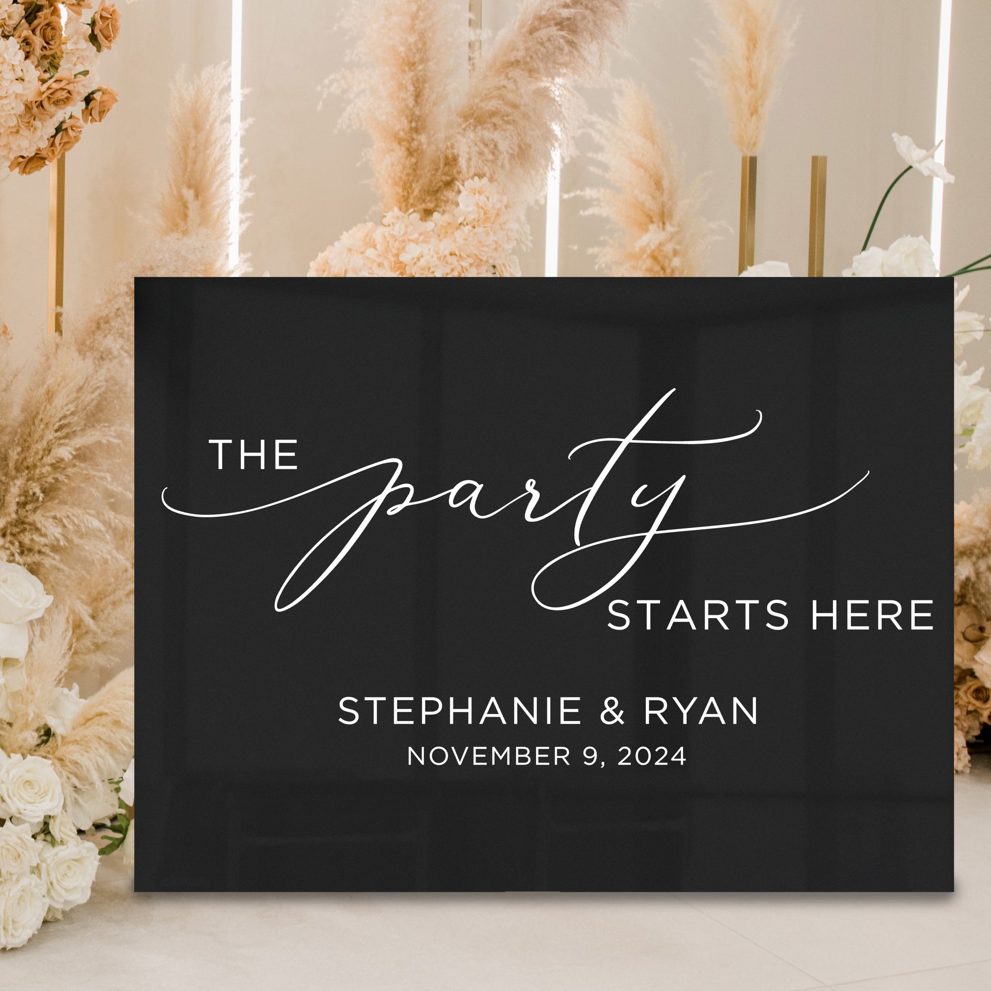 The Party Starts Here Modern Wedding Sign Decal - Elegant Party Decor