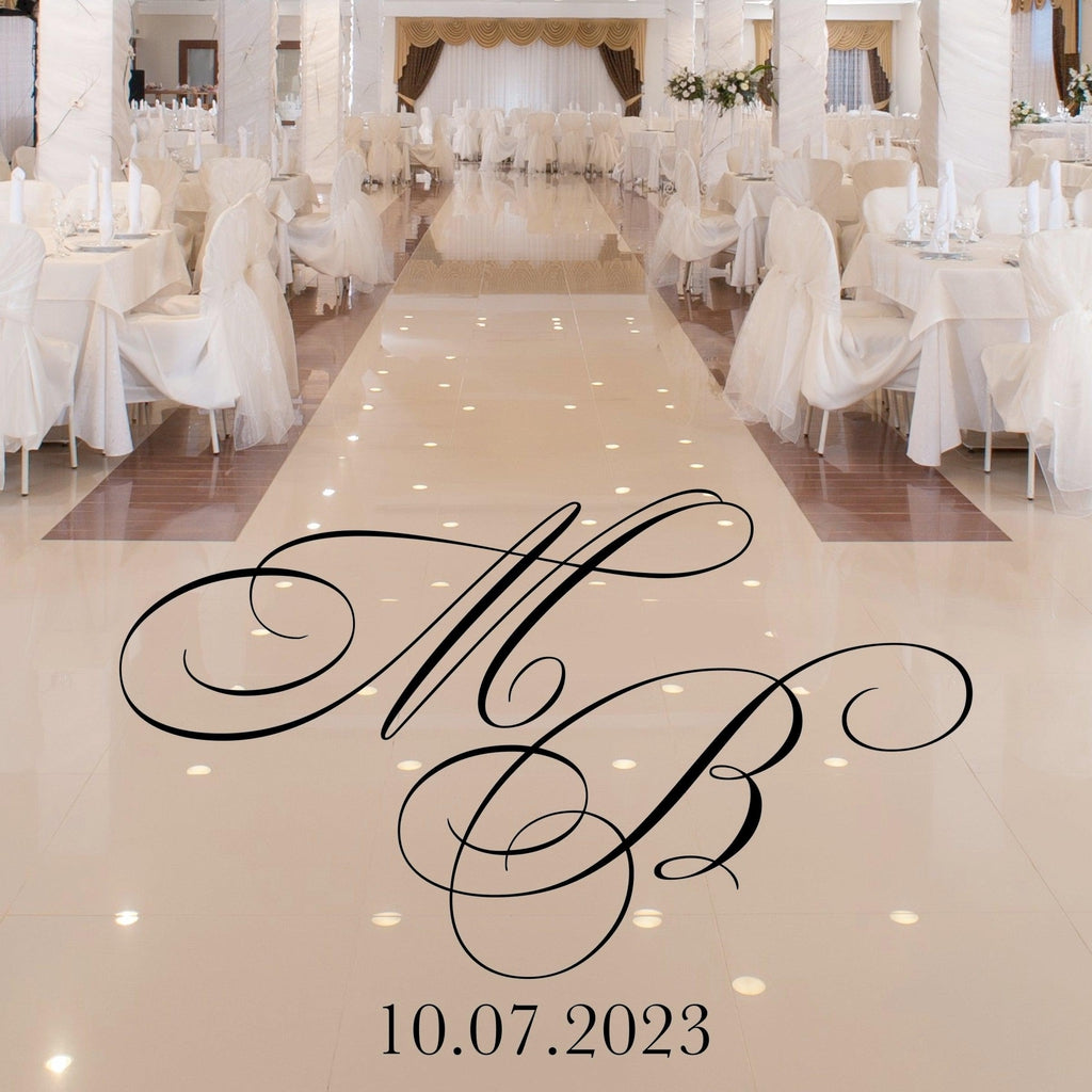 Wedding Monogram Dance Floor Decal - Simple Romantic Decor for Wedding Signs