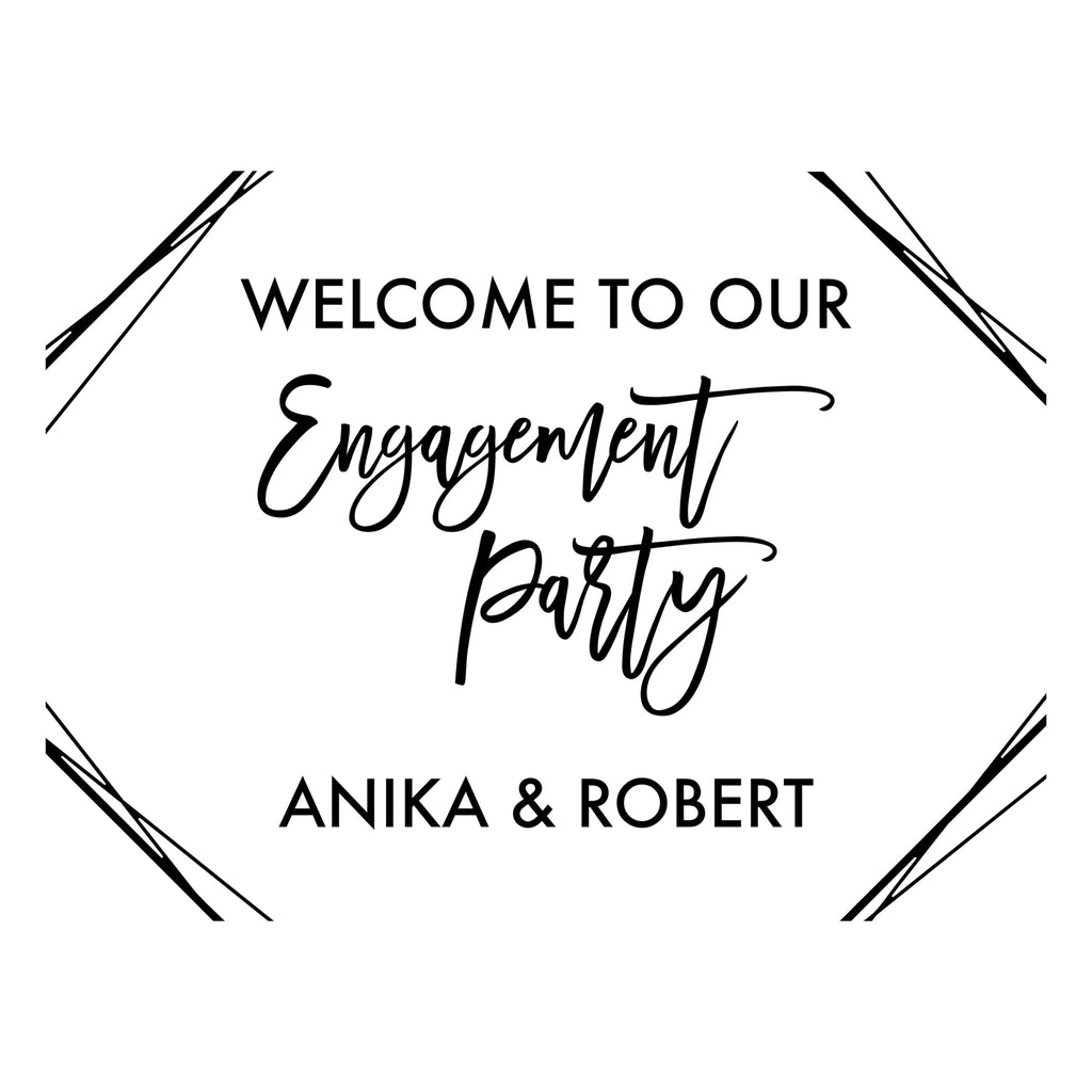 This beautiful vinyl sticker sign reads “Welcome to our Engagement Party” Below, the sign can be personalized with the name of the soon-to-be married couple. A trendy geometric frame ties the design together. Choose from over 30 colors to create a beautiful sign.
