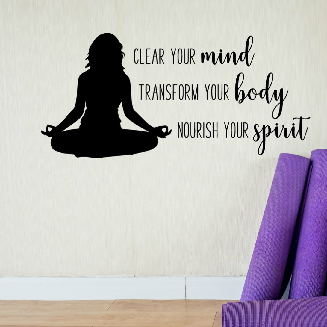 Yoga Wall Vinyl Decal - Clear Your Mind, Body, and Spirit Quote Sticker